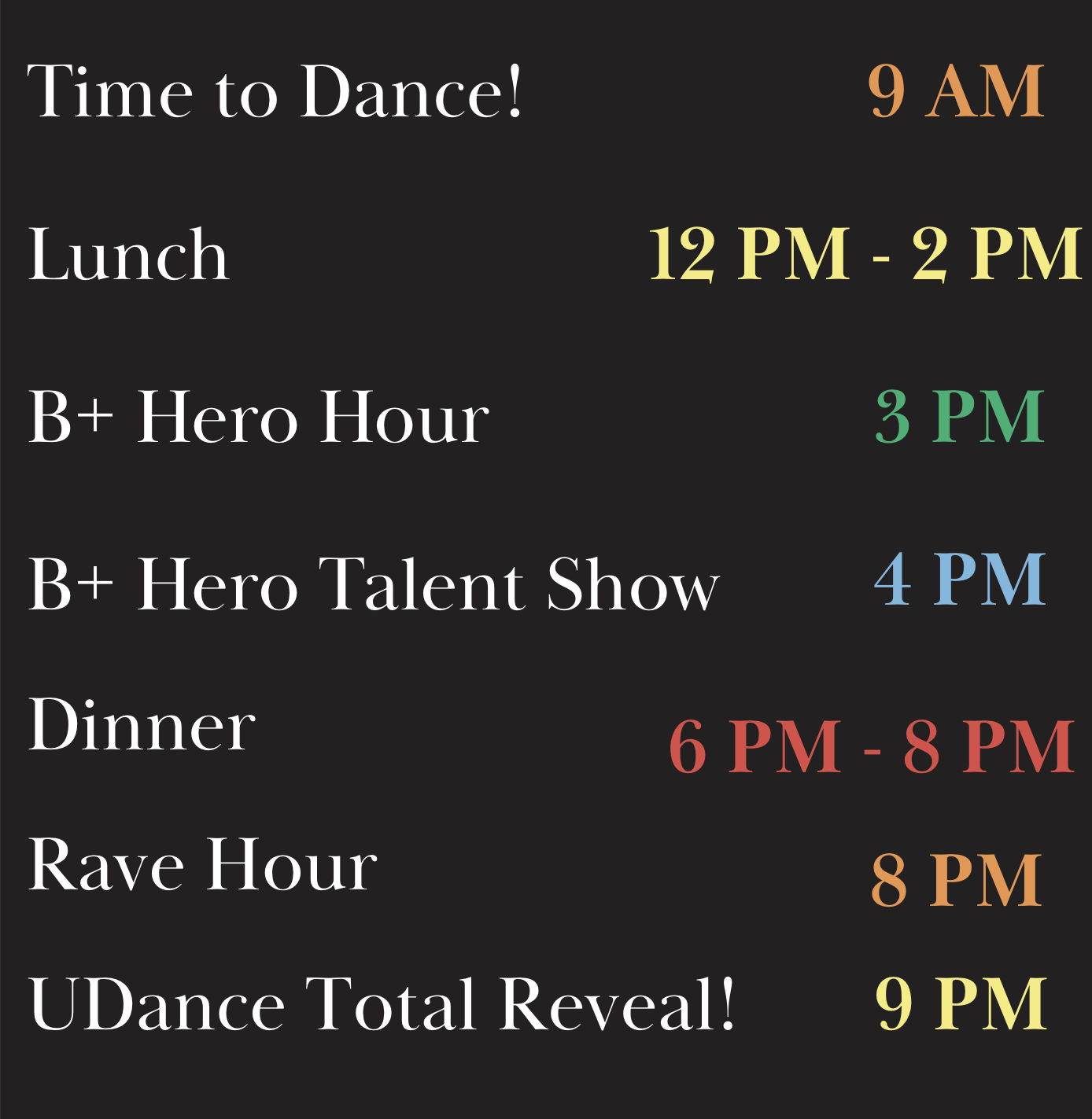 B+ Families, please utilize the below schedule to guide you through your day of never-ending fun!